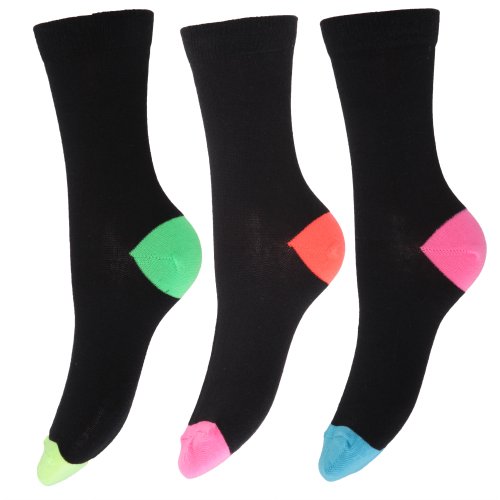 Chaussettes néon (3 paires) - Femme (EUR 37-39) (Noir avec talon néon)