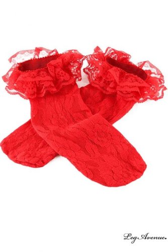 Leg Avenue - Soquettes Dentelle sur Dentelle - One Size - Rouge - 3030