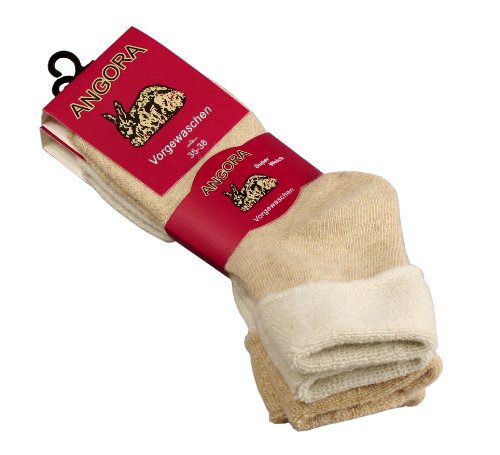 Lot de 4 paires de chaussettes Angora de couleur blanche et crème pour femme. Ces chaussettes ultra douces garderont toujours leur forme grâce à leur teneur en élasthanne. 30% laine, 30 % acrylique, 20 % polyamide et 15 % angora, 5% Elastane