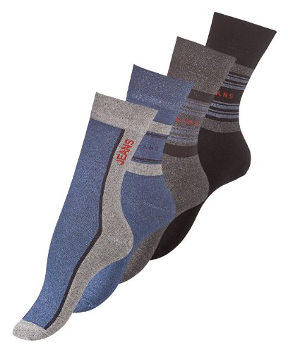 Lot de 8 paires de chaussettes pour femme aspect jean. Fabriquées dans un tissu 80 % coton, 15 % polyamide et 5 % élasthanne qui garantit un ajustement parfait. Bord côte maille piquée à l'élastique léger qui ne comprime pas les mollets.