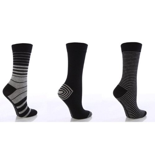 Chaussettes rayées (lot de 3 paires) - Femme (EUR 37-42) (Noir/Rayures grises)