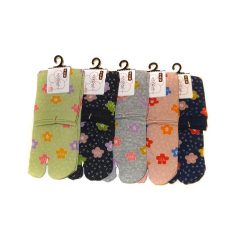 Japonmania - Tabi mi-mollet - Du 35 au 39 - motifs de fleurs de prunier - Bleu foncé