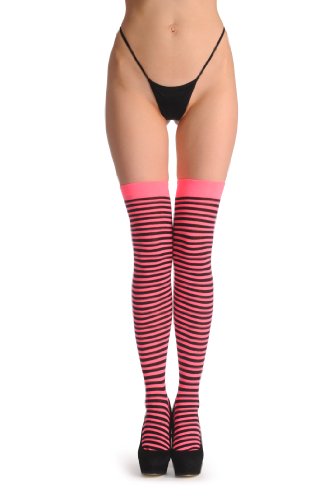 Black & Neon Pink Thin Stripes - Rose Chaussettes Montantes Taille Unique (37-42)