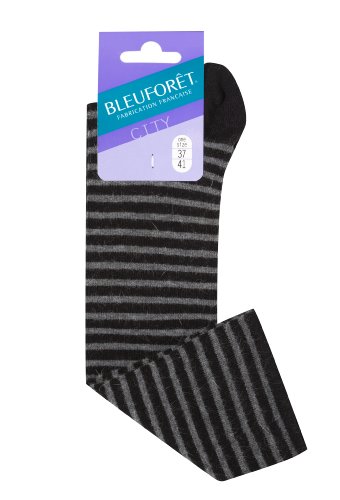 Bleuforêt - Mi-Bas Angora Rayures - Femme - Couleur Noir - Taille unique 37/41