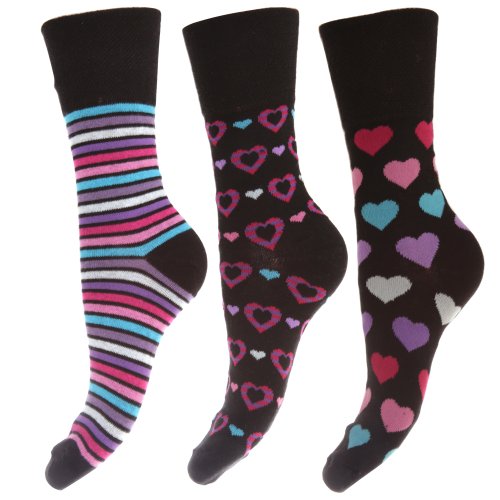 Chaussettes avec haut non-élastiqué (lot de 3 paires) - Femme (EUR 37-41) (Coeurs/Rayées)