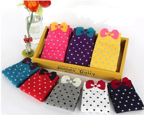 Aolevia 4 pcs Aimable 3D Chaussette Femme Courte En Coton Avec Noeud Papillon Confortable et à La Mode Pour 4 Saisons Taille Unique