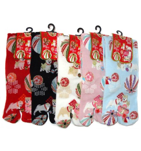 Chaussettes tabi mi-mollet, motifs de Temari et de chiots Akita Inu