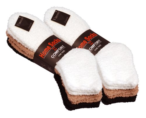 Lot de 6 paires de chaussettes d'intérieur ultra-douces. Bord côte doté d'un élastique léger qui ne comprime pas les mollets et assure un confort optimal. Fabriquées en tissu moelleux 95 % polyester et 5 % élasthanne. Contenu de la livraison : 2 paires noires, 2 paires blanches et 2 paires lilas. Taille : Unique (35/40)