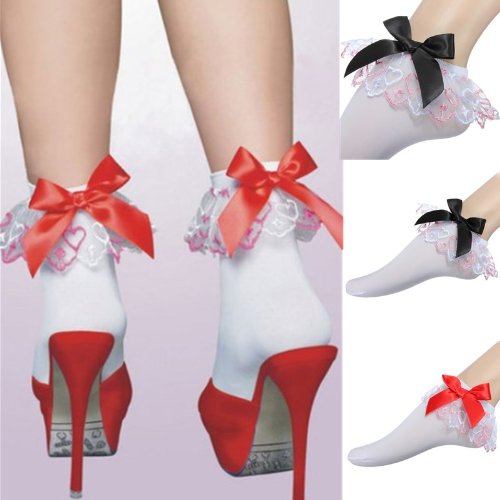 Chaussettes Cosplay Dentelle Socquettes Cheville Lace Rétro Noeud Papillon Socks Rouge