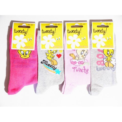 Chaussettes femme Tweety Lot de 4 paires Composition: 68 % Coton, 14 % polyester, 16 % polyamide, 2% Elasthanne - au choix (Pointure chaussettes) | (1)35/41