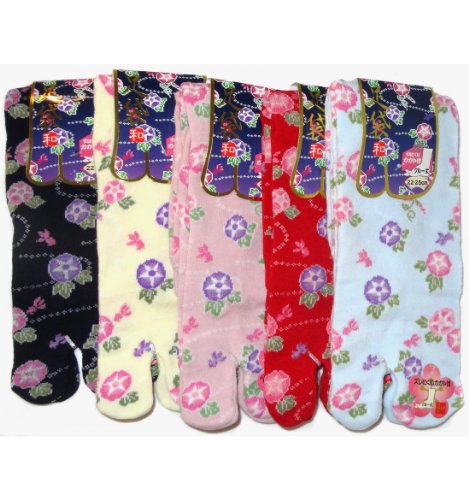 Japonmania - Tabi mi-mollet - Du 35 au 39 - Motifs de volubilis - Rose
