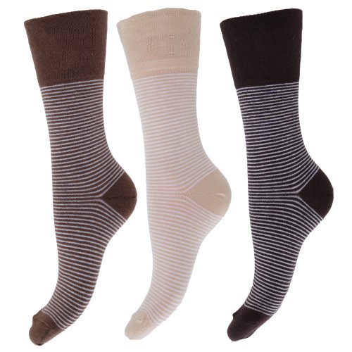 Chaussettes (lot de 3 paires) - Femme (EUR 37-41) (Marron rayées)