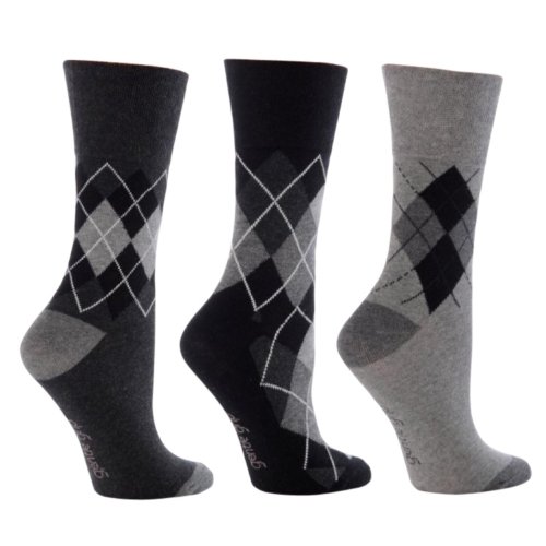 Chaussettes à motifs losanges avec haut non élastique à nid d'abeille Gentle Grip pour femme (lot de 3) (EUR 37-42) (Noir/Gris)
