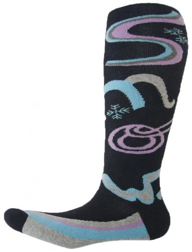 SOCKS EQUIPEMENT Chaussettes de ski Snow Valley Femme - Coloris noir - Motif fantaisie (gris, rose, bleu turquoise) - Chaussettes hautes - Pointe et talon renforcés - Intérieur bouclettes - Composition : 90 % coton, 9 % polyamide, 1% elasthanne