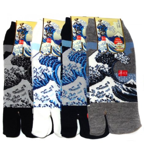 Japonmania - Chaussettes Tabi - Du 35 au 39 - Grande vague d'Hokusaï - Noir, Taille unique