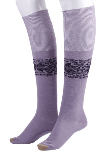 Y-BOA 1 Pair Unisexe Chaussettes Haute Couvert Jambier avec impression en Coton et Elasthanne Epais Anti-dérapantes Elastique souple d'hiver Pâle Violet