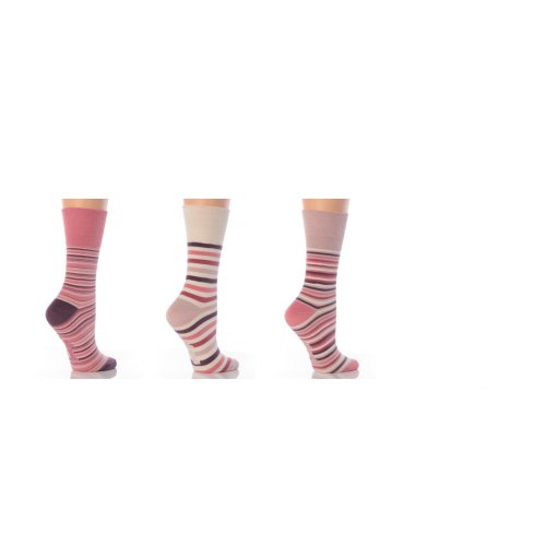 Chaussettes rayées avec haut non élastique à nid d'abeille Gentle Grip pour femme (lot de 3) (EUR 37-42) (Rose/Crème)
